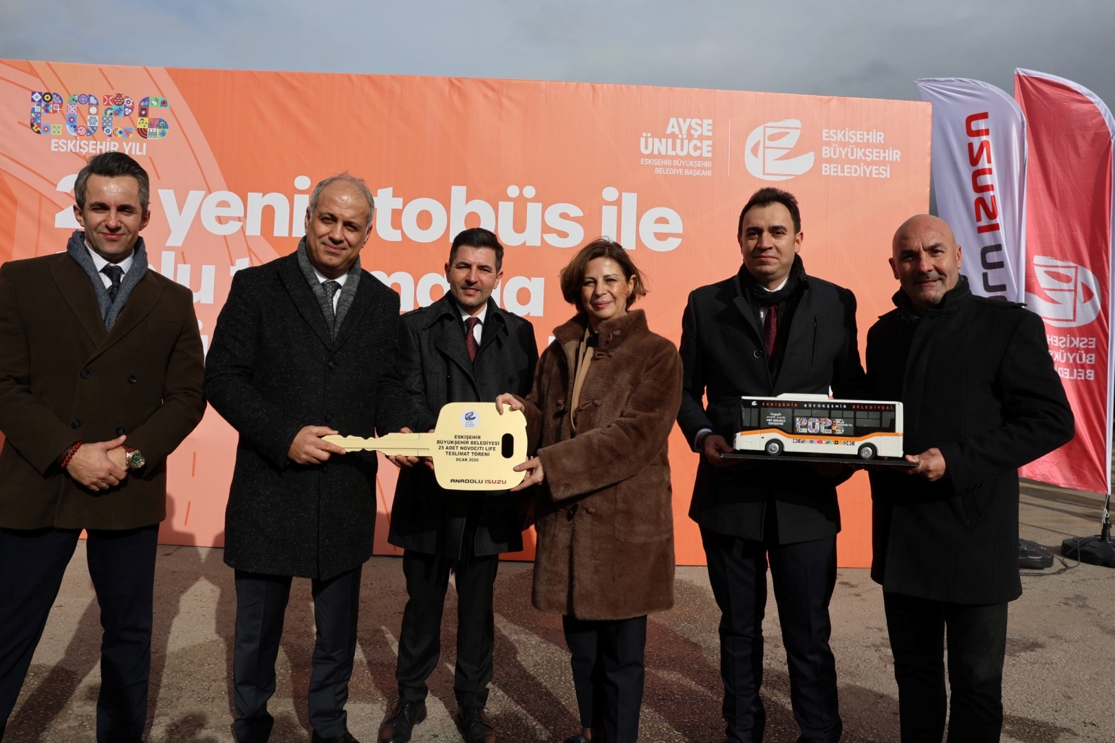 Türkiye’nin ticari araç markası Anadolu Isuzu, şehir içi toplu taşımada konfor ve verimliliği artırmaya yönelik çalışmalarına devam ediyor. Anadolu Isuzu, Eskişehir Büyükşehir Belediyesi filosuna 25 adet NovoCiti Life otobüs teslim etti. NovoCiti Life otobüsler, “2026 Eskişehir Yılı” kapsamında özel bir törenle büyükşehir toplu taşıma filosuna kazandırıldı. Törene Eskişehir Büyükşehir Belediye Başkanı Ayşe Ünlüce, CHP Eskişehir Milletvekili Jale Nur Süllü, Eskişehir Büyükşehir Belediyesi Toplu Taşıma Dairesi Başkanı Oğuz Özkara ile Anadolu Isuzu’dan Yurtiçi Otobüs Satış Müdürü Murat Küçük, Bayi Kanalı Yöneticisi Emin Günışık ve Bayi Kanalı Sorumlusu Hasan Aydın katıldı.