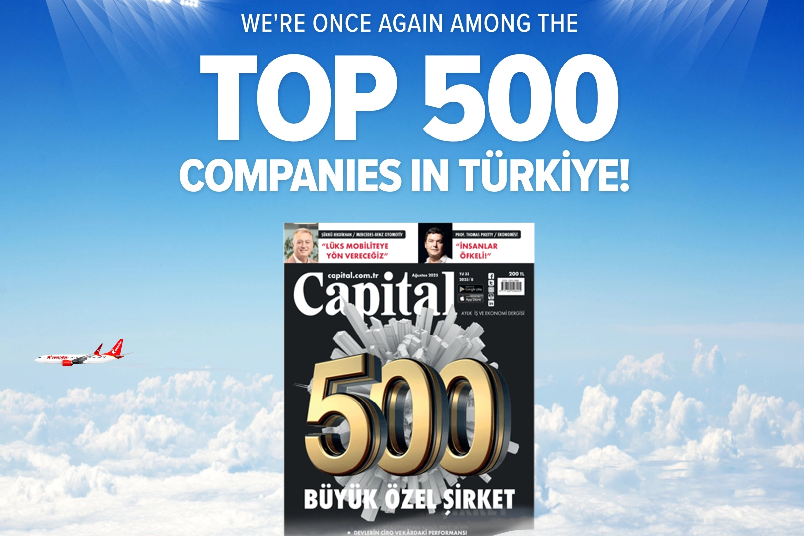 Avrupa’nın ve Türkiye’nin öncü havayolu şirketlerinden Corendon Airlines, 20. yılını Capital 500 listesinde yükselerek taçlandırdı. 2011 yılında ilk kez girdiği Capital 500 listesinde aralıksız olarak yer almayı başaran hava yolu şirketi, yıldan yıla gösterdiği performansla listede üst sıralara doğru ilerleyerek Türkiye ekonomisine değer katan lider kuruluşlar arasında konumunu sağlamlaştırdı.