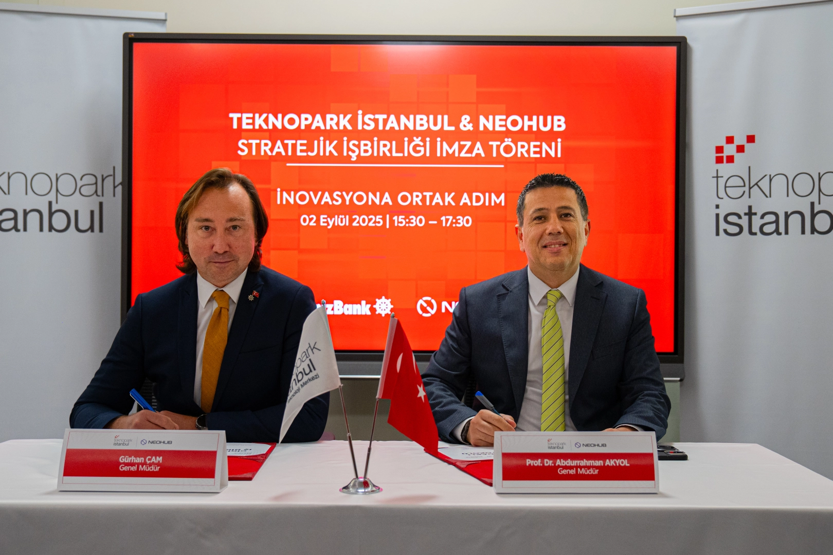 İş birliği protokolü, 2 Eylül Salı günü, Teknopark İstanbul’un finansal teknolojiler odaklı uydu kuluçka merkezi Cube Ümraniye’de Teknopark İstanbul Genel Müdürü Prof. Dr. Abdurrahman Akyol ve NEOHUB Genel Müdürü Gürhan Çam’ın katılımıyla imzalandı.