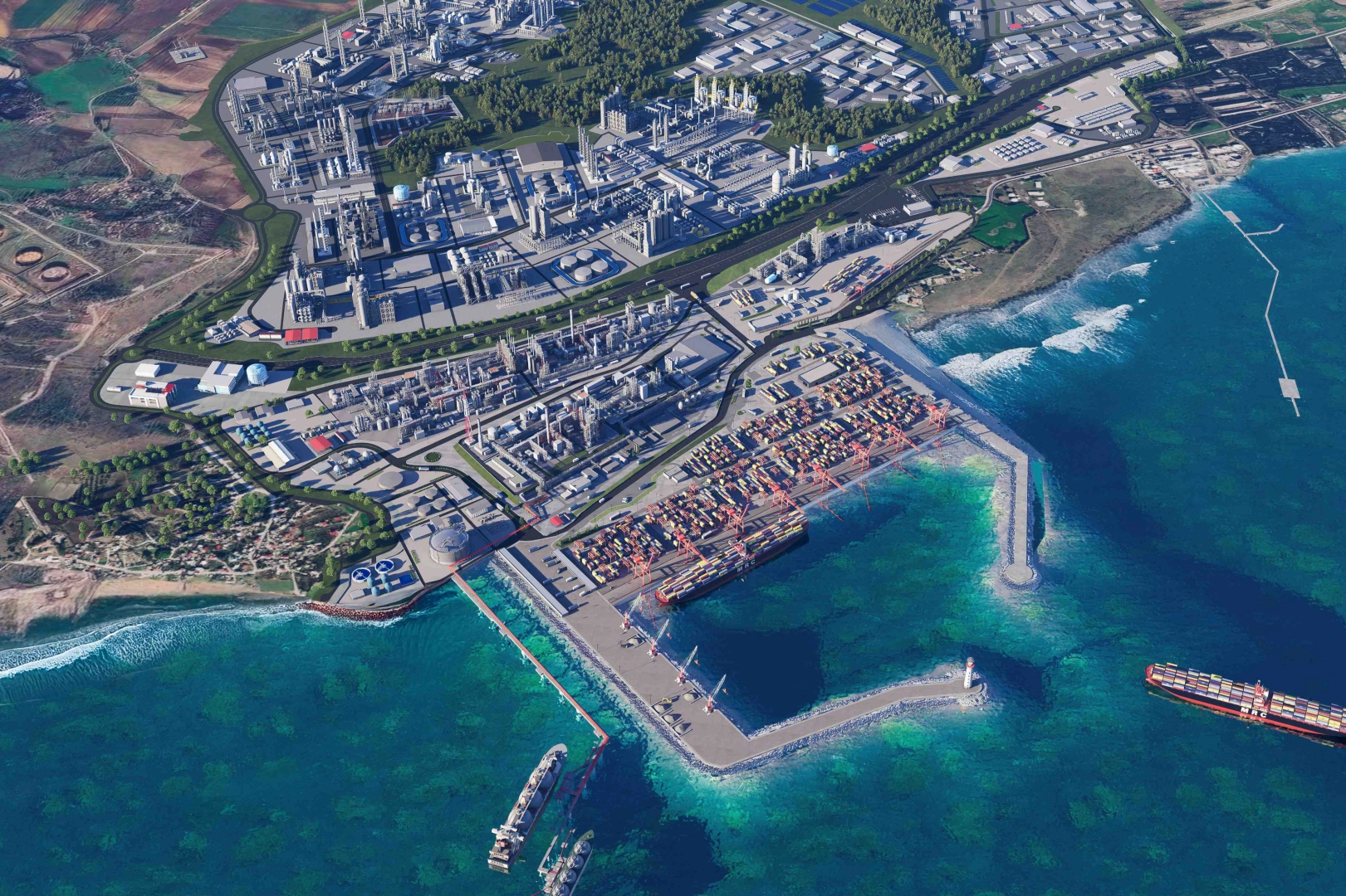 2.750 hektarlık alana ve iki kilometrelik kıyı şeridine sahip olan DAPEK; petrokimya, yeni nesil malzemeler ve enerji dönüşümü odaklı sektörler başta olmak üzere yüksek teknoloji odaklı sanayi faaliyetlerinin yürütüleceği bir merkez olarak tasarlanıyor. Kara, deniz ve demir yolu taşımacılığıyla lojistik bir merkez olarak konumlanan bölgede; sıvı, gaz, konteyner ve kuru yük olmak üzere farklı yük türlerine yönelik depolama ve taşımacılık çözümleri sunuluyor. Ayrıca endüstri bölgesinde; güneş enerjisi santrali ve yeşil hidrojen üretim tesisini kapsayan entegre bir enerji altyapısı da bulunuyor.