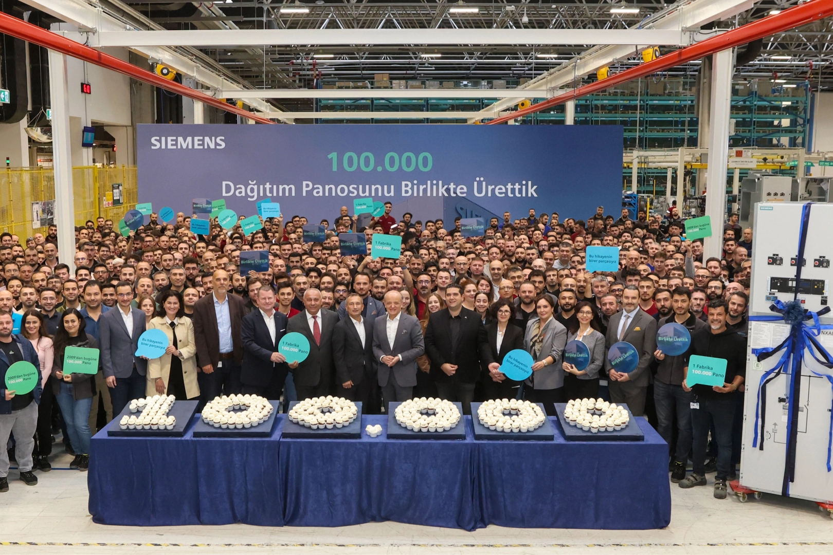 2009 yılından itibaren Gebze’de faaliyet gösteren Siemens Entegre Üretim Tesisi, 100.000’inci orta gerilim dağıtım panosunu da başarıyla üreterek Türkiye sanayisinin ve global enerji pazarının ihtiyacına yönelik kapasitesini bir kez daha göstermiş oldu. Siemens Türkiye Yönetim Kurulu Başkanı ve CEO’su Hüseyin Gelis konuyla ilgili olarak “Bu başarıda emeği geçen tüm çalışma arkadaşlarımıza teşekkür ediyorum. Siemens Entegre Üretim Tesisi, 50'den fazla ülkeye ihraç ettiğimiz bu ürünler ile Türkiye’nin dünya liginde nasıl bir oyuncu olduğunu açıkça gösteriyor” dedi.