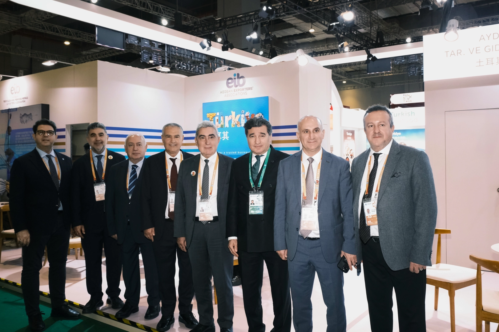 Çin Uluslararası İthalat Fuarı’na Ege İhracatçı Birlikleri’ni temsilen, Ege İhracatçı Birlikleri Koordinatör Başkan Yardımcısı ve Ege Demir ve Demir dışı Metaller İhracatçıları Birliği Yalçın Ertan, Ege İhracatçı Birlikleri Sürdürülebilirlik ve Organik Ürünler Koordinatörü ve Ege Kuru Meyve ve Mamulleri İhracatçıları Birliği Başkanımız Mehmet Ali Işık, Ege Hazırgiyim ve Konfeksiyon İhracatçıları Birliği Başkanı Burak Sertbaş, Ege Hububat Bakliyat Yağlı Tohumlar ve Mamulleri İhracatçıları Birliği Başkanı Muhammet Öztürk, Ege Deri ve Deri Mamulleri İhracatçıları Birliği Başkanı Erkan Zandar, Ege Su Ürünleri ve Hayvansal Mamuller İhracatçıları Birliği Başkanı Bedri Girit ve Yönetim Kurulu Üyeleri Keskin Keskinoğlu ve Nedim Kalpaklıoğlu katıldı.