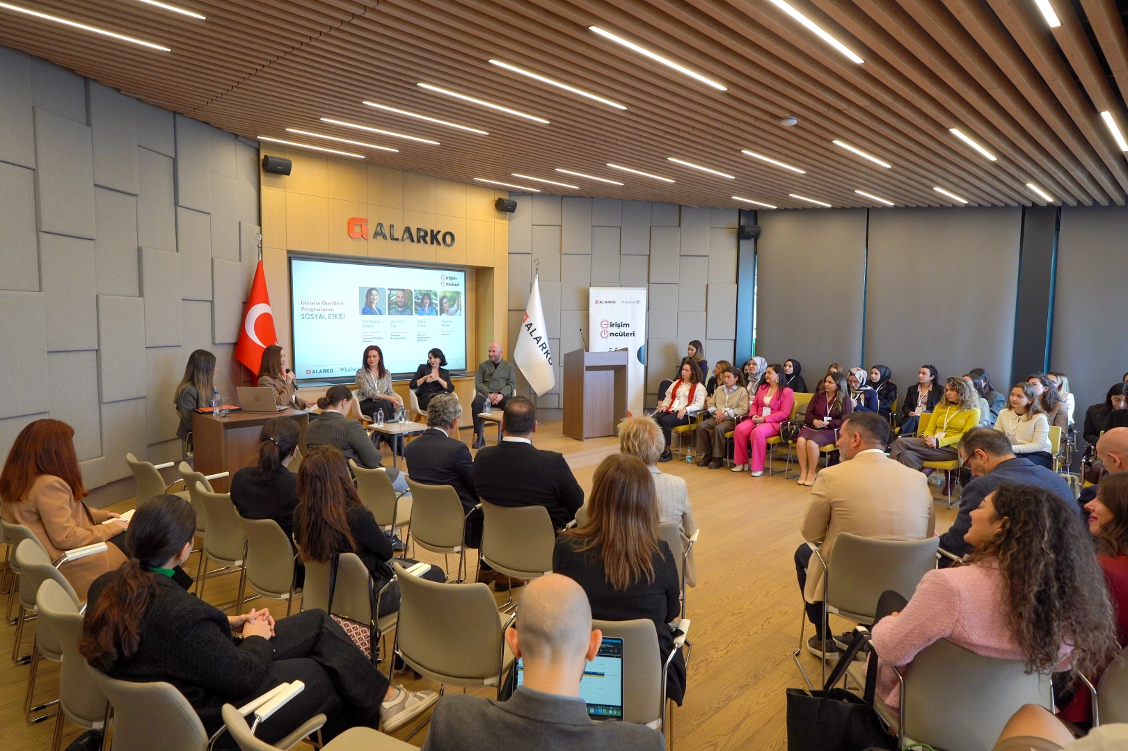Üç yıldır Birleşmiş Milletler Sürdürülebilir Kalkınma Amaçlarına çok boyutlu katkı sağlayan Girişim Öncüleri Programı ödül töreni Alarko Holding Konferans Salonunda gerçekleştirildi. Alarko Holding Yönetim Kurulu üyeleri, üst düzey yöneticileri ve proje paydaşlarının 25 kadın girişimciyi yakından tanıma fırsatı bulduğu törene önceki yıllarda hibe alan girişimciler de katılarak deneyimlerini paylaştılar.