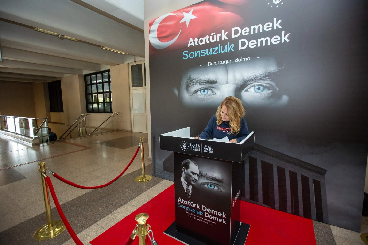Cumhuriyetimizin kurucusu Ulu Önder Gazi Mustafa Kemal Atatürk’ün aramızdan ayrılışının 87. yıl dönümünde Bursa’da kalpler ve kalemler, Büyükşehir Belediyesi’nin projesi ile bir araya geliyor. Bursalılar, Ata’ya duydukları özlem ve sevgilerini Büyükşehir Belediyesi’nin kentin farklı noktalarına kurduğu anı defteri stantlarıyla satırlara döküyor. Bursa Büyükşehir Belediyesi, Cumhuriyet’in kurucusu, Ulu Önder Gazi Mustafa Kemal Atatürk’ün ebediyete uğurlanışının 87. yıl dönümü dolayısıyla kent genelinde anlamlı bir etkinliğe daha imza attı. Bursalıların Atatürk’e olan sevgi, saygı ve özlemlerini ifade edebilmeleri amacıyla kentin 10 ayrı noktasına ‘anı defteri stantları’ kuruldu. Şehreküstü, Acemler ve Uludağ Üniversitesi BursaRay istasyonlarının yanı sıra Mudanya BUDO İskelesi, Şehirlerarası Otobüs Terminali, PodyumPark, Kent Meydanı, Çarşıbaşı B Kafe, Bursa Büyükşehir Belediyesi Tarihi Belediye Binası önü ve Yıldırım Barış Manço Kültür Merkezi’nde kurulan anı defteri noktalarıyla vatandaşlar, duygu ve düşüncelerini yazarak kent belleğine kalıcı birer hatıra bırakıyor. Bursalılar, 9 Kasım akşamına kadar hizmette olacak anı defteri stantlarıyla Ata’ya duydukları minneti ve sevgiyi birlik duygusuyla cümlelere dökebilecek.