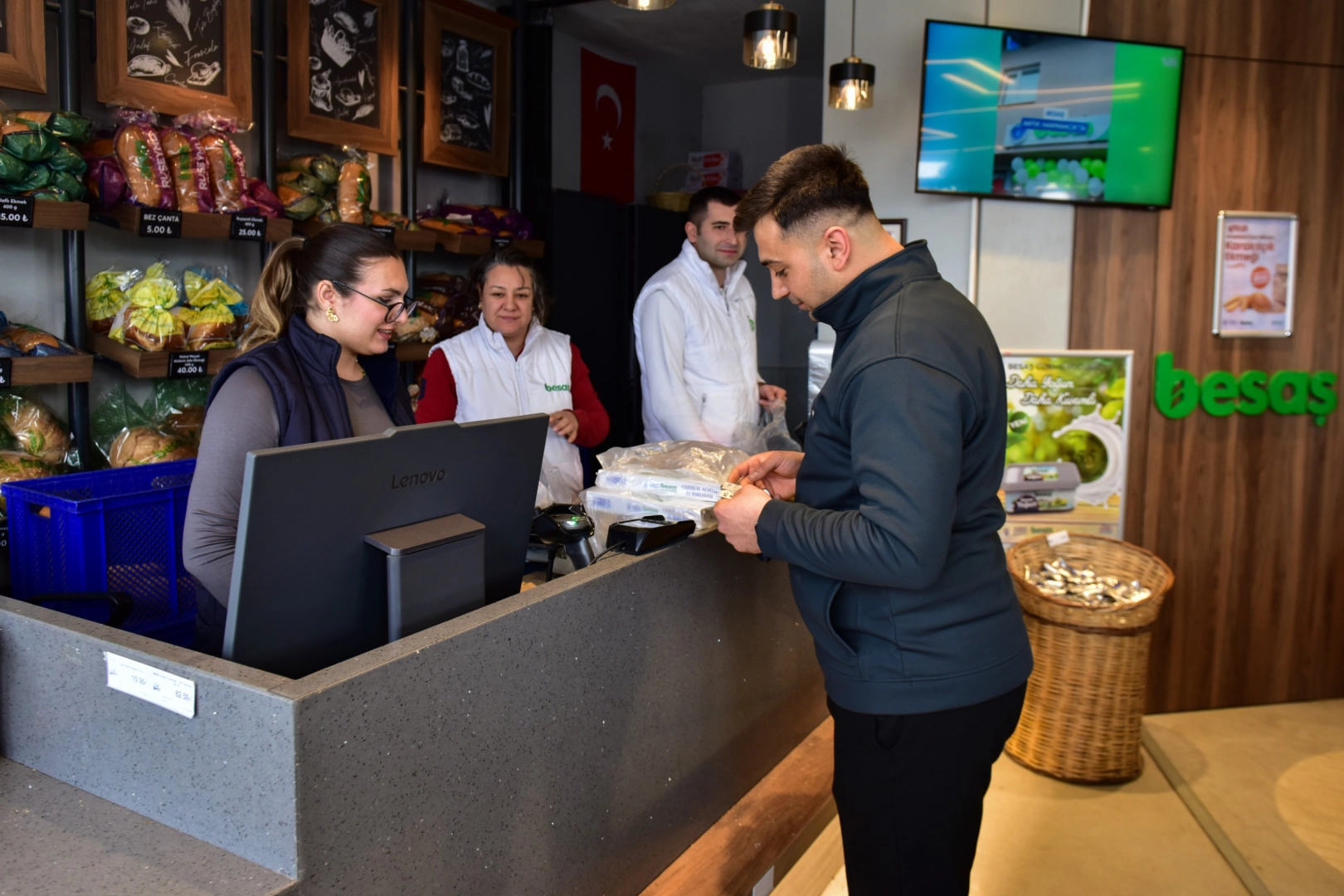 Bursa’da vatandaşların kaliteli ürünlere uygun fiyata ulaşabilmesi için çalışmalarını sürdüren Büyükşehir Belediyesi, BESAŞ aracılığıyla Ramazan Bayramı öncesinde el açması kuru baklavaları Bursalıların beğenisine sundu. Kadın üreticiler tarafından hijyenik koşullarda ve büyük bir özveriyle üretilen cevizli tereyağlı el açması baklavalar, BESAŞ Satış Noktalarında vatandaşlardan büyük ilgi görüyor. Ramazan ayı boyunca 450 gram Ramazan pidesini 25 TL'ye satan BESAŞ, yarım kiloluk cevizli baklavaları da 380 TL’ye satarak Bursalıların bayramda da ağzını tatlandırıyor. İlk etapta 5 bin adet üretilen baklavalar kısa sürede tükenirken, ek siparişle üretilen 5 bin adet cevizli baklava da arife gününde de büyük talep gördü. BESAŞ’ın el açması baklavalarının satışı bayram sonrasında da devam edecek. BESAŞ’ta satılan baklavaların ev yapımı baklavalardan farkı olmadığı söyleyen vatandaşlar, güvenilir ürünleri uygun fiyata almalarını sağlayan Başkan Mustafa Bozbey’e ve BESAŞ’a teşekkür etti.