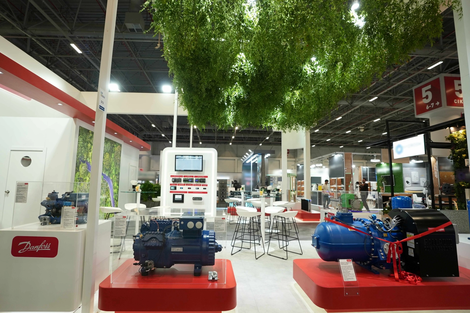 Danfoss standında, podyumlarda öne çıkarılan Palladio, Turbocor, Bock ve VZN, PSG Scroll (propanla çalışan) gibi ana kompresör ürünlerinin yanı sıra; endüstriyel soğutma sistemleri ve farklı ısı eşanjörleri de yer aldı. Ayaklı stantta ise hat ekipmanları, genleşme vanaları, elektronik kontrol cihazları ve sistem yöneticileri gibi daha hafif ve kompakt ürünler bir arada sunuldu. 80” dokunmatik ekran üzerinden ziyaretçiler, Danfoss’un tüm çözümlerini etkileşimli şekilde inceleyebildi. Ayrıca standın üst kısmındaki curve ekran, öne çıkan ürün ve mesajları dinamik biçimde aktardı. Açıkhava reklam alanlarında ise Danfoss Akademi gibi stratejik içerikler yer aldı. Etkileşimli stand deneyimi ve ürün çeşitliliği ile öne çıkan Danfoss, MENA ve Orta Asya’dan gelen katılımcılarla bölgesel bir etkileşim gerçekleştirme imkanı buldu.