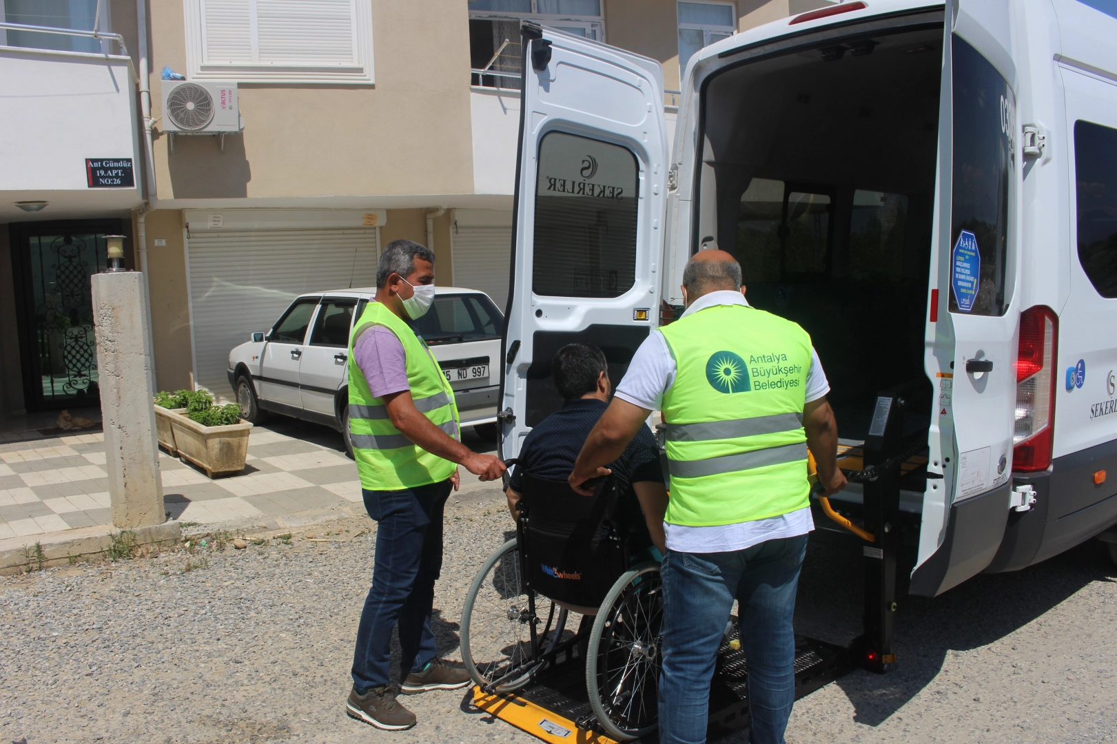 Antalya Büyükşehir Belediyesi, sosyal belediyecilik çalışmaları kapsamında engelli bireylerin kamu kurumlarındaki ve hastane randevuları gibi işlerini kolaylaştırmak amacıyla hayata geçirdiği “Engelsiz Hizmet Aracı” hizmetini sürdürüyor. Büyükşehir Belediyesi Sosyal Hizmetler Dairesi Başkanlığı tarafından yürütülen proje kapsamında, engelli vatandaşlar randevu sistemiyle hizmetten faydalanabiliyor. Vatandaşlar, kendisine refakatçi eşliğinde evlerinden alınarak gitmek istedikleri kamu kurumuna bırakılıyor. İşleri tamamlandığında ise yine aynı araçla evlerine tekrar ulaştırılıyor.