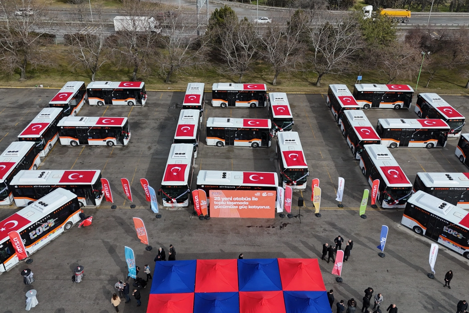 Temin edilen 25 yeni otobüs için Eskişehir Büyükşehir Belediyesi Şehirlerarası Otobüs Terminali’nde teslim töreni düzenlendi. Törene Eskişehir Büyükşehir Belediye Başkanı Ayşe Ünlüce’nin yanı sıra CHP İl Başkanı Talat Yalaz, CHP Eskişehir Milletvekili Jale Nur Süllü, Anadolu Isuzu Otobüs Satış Müdürü Murat Küçük, ilçe belediye başkanları, meclis üyeleri, belediye bürokratları, belediye personeli, şoförler ve vatandaşlar katıldı.