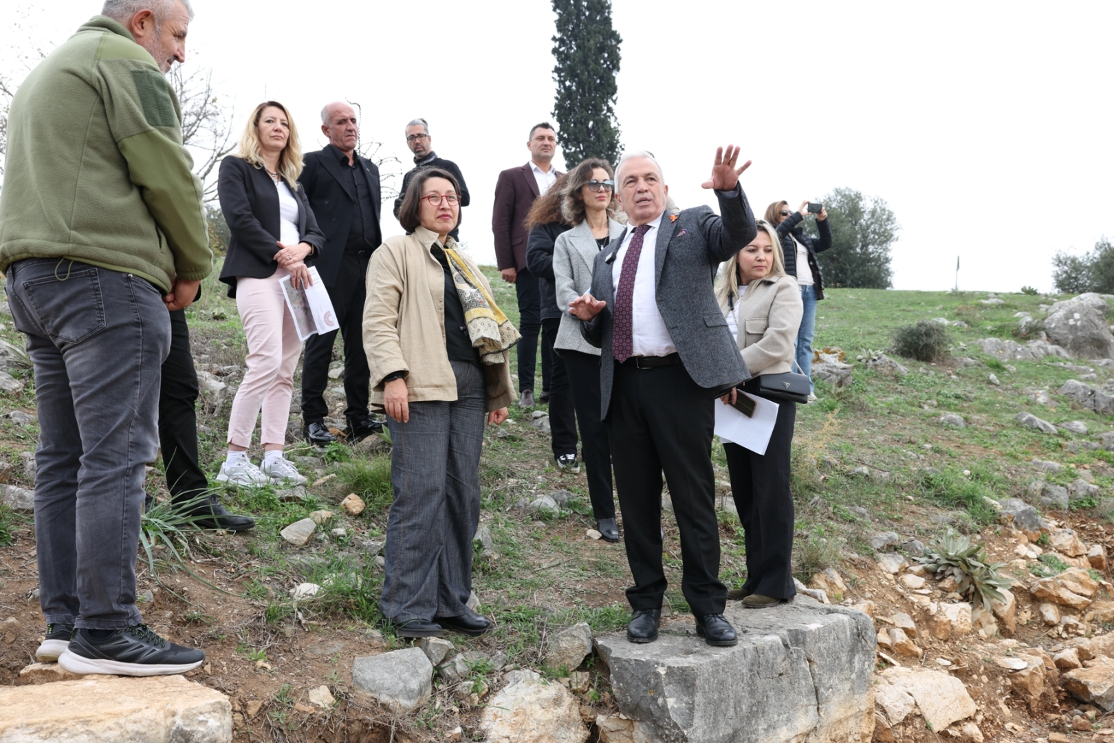 Başkan Şadi Özdemir, antik tiyatro kazı bölgesinin ardından bölgede yeni bulunan “Simitçi Kale” bölümündeki ipek atölyesini de ziyaret etti.