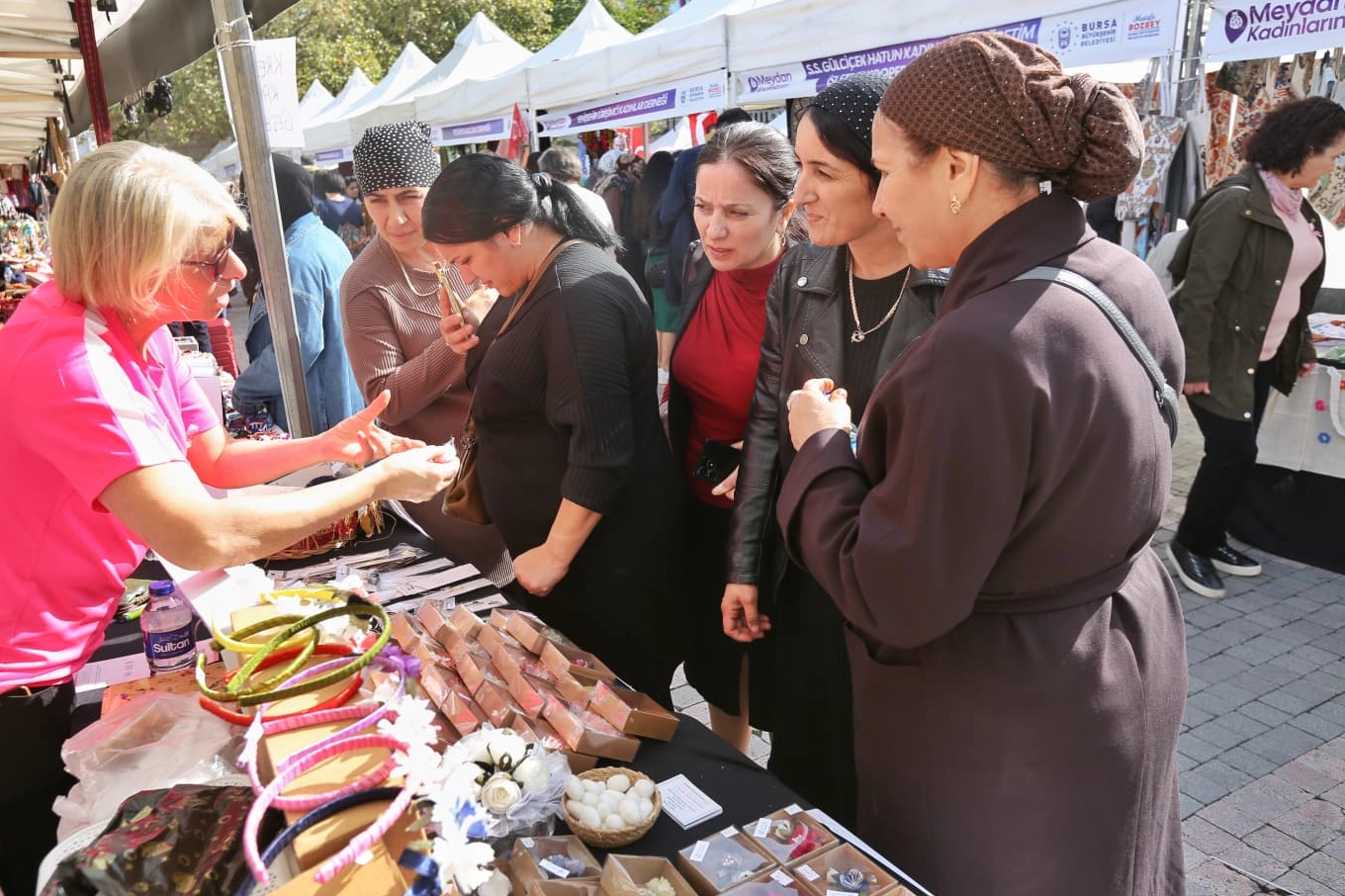 “Geçinen ve Gülümseyen Bursa” hedefiyle üreten kadınları her zaman destekleyen Büyükşehir Belediyesi, ‘Meydan Kadınların’ projesiyle kadın emeğini görünür kılmaya ve ekonomik olarak güçlenmelerine katkı sunmaya devam ediyor. Bu kapsamda başlatılan projenin üçüncü durağı, Heykel Orhangazi Parkı oldu. Kurulan el emeği pazarında birçok farklı el sanatı ürünü ve yerel tatlar stantlarda yerini alırken, Orhangazi Parkı, Bursalılarla dolup taştı. “Meydan Kadınların” Bu tür etkinliklerin kadınların ekonomiye katılımı ve çalışmalarının tanıtımı açısından büyük önem taşıdığını vurgulayan dernek ve kooperatif temsilcileri, kadınlara her alanda ve her zaman destek veren Büyükşehir Belediye Başkanı Mustafa Bozbey’e teşekkür etti. Bursa Kent Konseyi Sağlık Çalışma Grubu da Büyükşehir Belediyesi’nin 1-31 Ekim Meme Kanseri Farkındalık Ayı etkinlikleri kapsamında alanda yerini aldı. Tıp fakültesi öğrencilerinden oluşan genç sağlıkçılar, bilgilendirme yaparak meme kanserine dikkat çekmek amacıyla pembe renkli kurdele dağıttı. Meydan Kadınların Projesi, kentin farklı noktalarında Bursalılarla buluşmaya devam edecek.