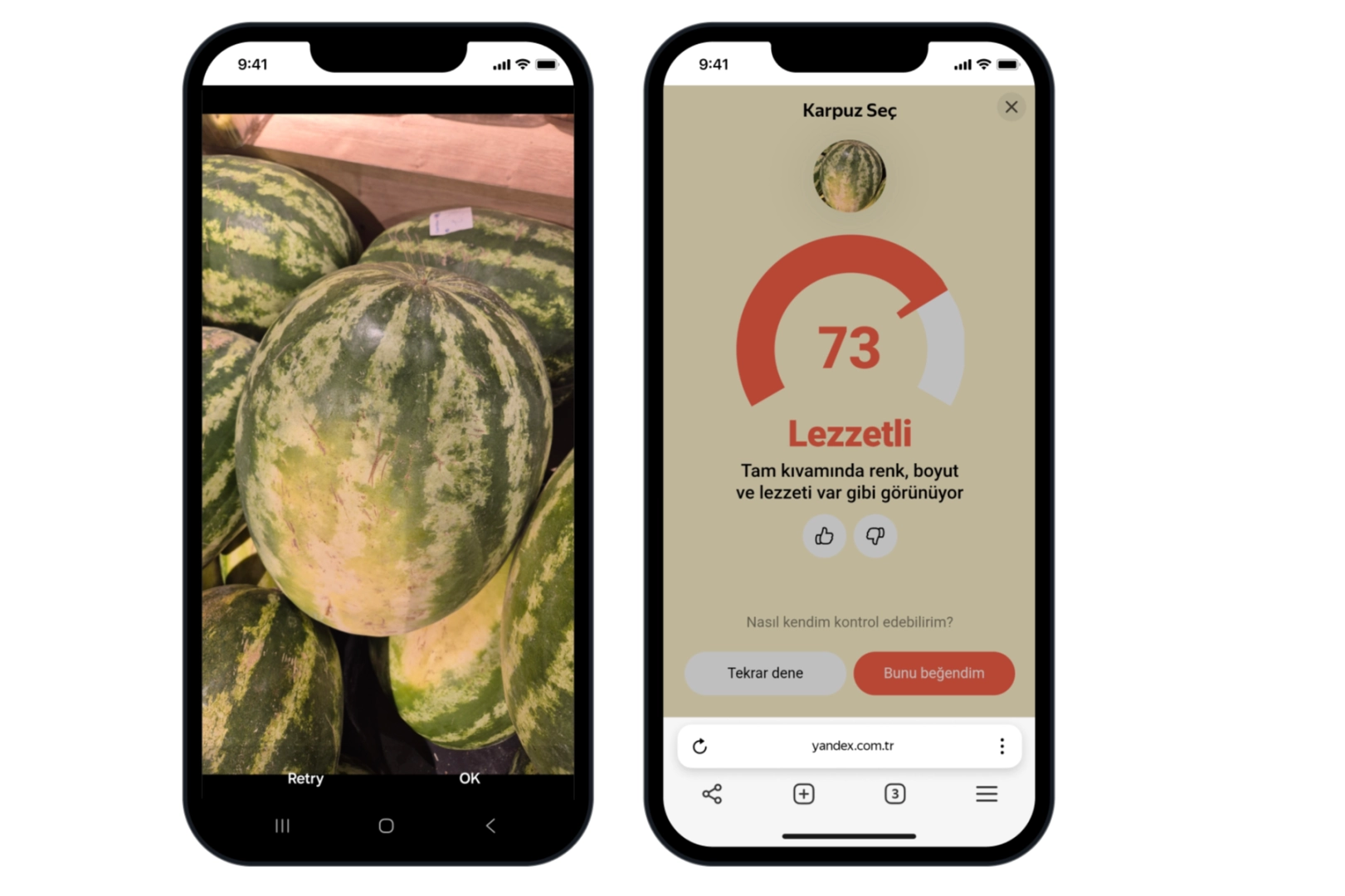 Kullanım ise oldukça basit. Kullanıcılar, Yandex Kamera ile karpuzun fotoğrafını çekiyor. Yapay zekâ modeli, görseldeki renk, şekil, desen ve yüzey lekeleri gibi temel göstergeleri analiz ederek karpuzun olgunluğunu değerlendiriyor. Fotoğraf 0 ile 99 arasında bir puan alıyor ve bu puan dört farklı kategoriye karşılık geliyor: Olgunlaşmamış, Orta Olgun, Sulu ve en çok aranan seviye olan Nefis. Ayrıca Karpuz Seçici, karpuz seçerken dikkat edilmesi gereken püf noktaları da paylaşıyor.