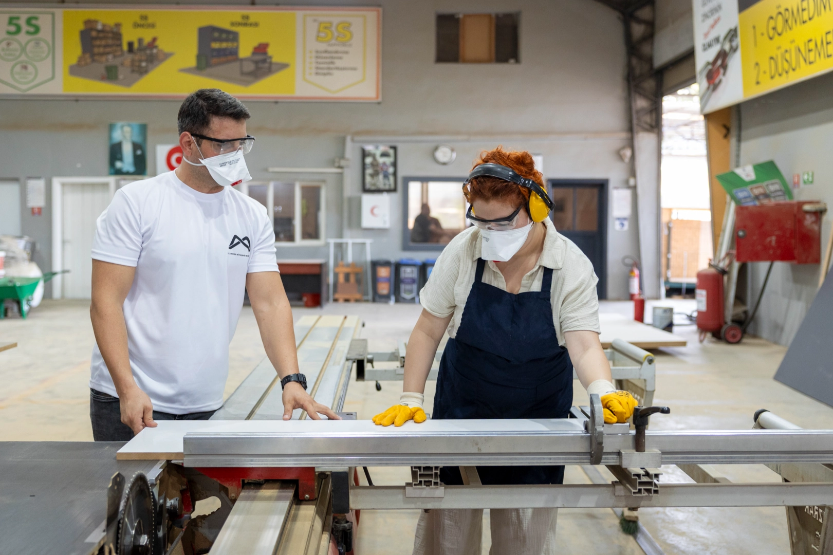 Özkan, en riskli kısmın ebatlama olduğunu ancak kursiyerlerin tedirginliğinin yüksek iş güvenliği önlemleri ile rahatladığını ve bugüne kadar hiçbir sorunla karşılaşmadıklarını ifade etti. Montaj aşamasında kursiyerlerin hissettiklerini aktaran Özkan, “Tüm aşamaların sonunda ortaya yeni bir ürün koymanın sevinci ile hep beraber mutlu oluyoruz. Burada MDF ile yapılabilecek tüm ürünleri yapıyoruz. Asıl amacımız kişilere temel olarak meslek edindirip istihdam sağlamak da olsa aynı zamanda ev ekonomisine de yardımcı olmak istiyoruz” dedi. Özkan, kursiyerlerin öğrenmiş olduğu becerilerle istihdama katılmasa dahi, evde yapılabilecek mobilya işlemlerini yaparak dolaylı yoldan da evin ekonomisine katkı sağlandığını sözlerine ekleyerek, “Temel düsturumuz meslek edindirmek ama aynı zamanda insanların sosyalleşmesine de önem veriyoruz. Bu açıdan da çok geniş bir perspektife sahibiz. En küçük kursiyerimiz 18 yaşında en büyük kursiyerimiz ise 63 yaşında” ifadelerine yer verdi.