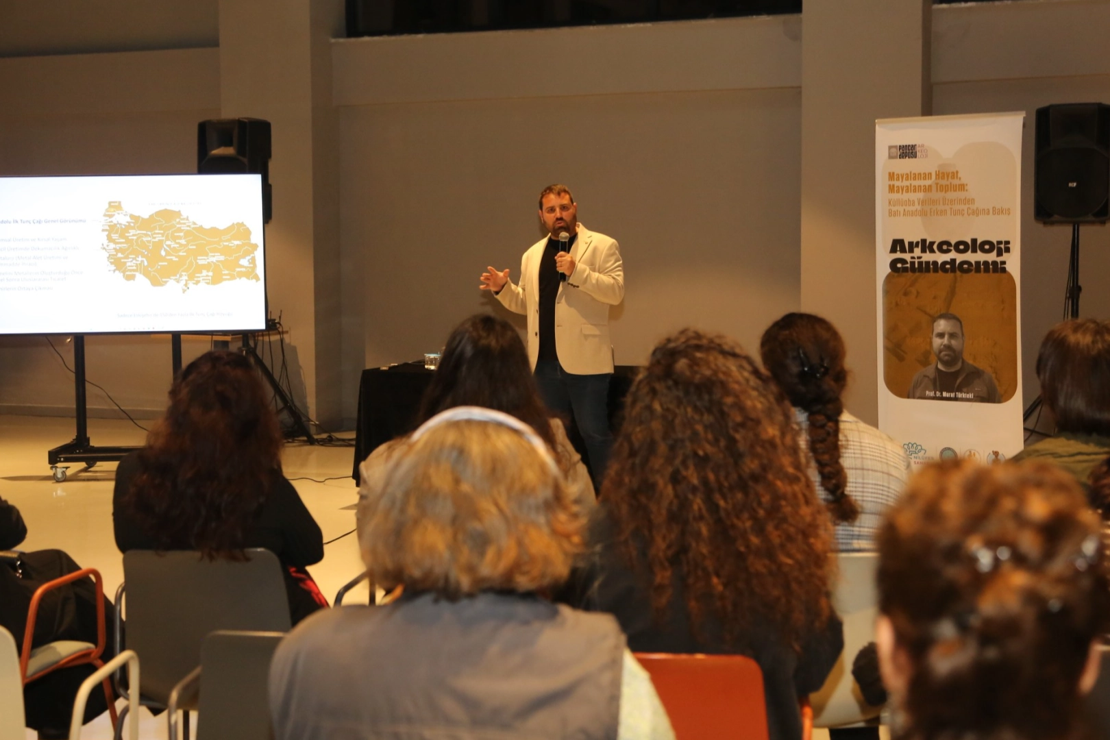 Nilüfer Belediyesi, Bursa Uludağ Üniversitesi Arkeoloji Bölümü ve Arkeologlar Derneği Bursa Şubesi iş birliğiyle düzenlenen “Arkeoloji Gündemi” söyleşi serisi Pancar Deposu’nda başladı. Programın ilk konuğu Bilecik Şeyh Edebali Üniversitesi Arkeoloji Bölümü Öğretim Üyesi Prof. Dr. Murat Türkteki, “Mayalanan Hayat, Mayalanan Toplum: Küllüoba Verileri Üzerinden Batı Anadolu Erken Tunç Çağı’na Bakış” başlıklı sunum gerçekleştirdi. Bu tür etkinliklerin arkeologlar için çok önemli ve anlamlı olduğunu söyleyen Prof. Dr. Türkteki, bu sayede hem kendi çalışmalarının bir sonucunun alındığını, hem de eğitici bir programın gerçekleştirildiğini söyledi. Etkinlikle toplumla bağ kurulabildiğine de dikkat çeken Türkteki, emeği geçenlere teşekkür etti. Küllüoba kazı çalışmalarının 1996 yılında Prof. Dr. Turan Efe tarafından başlatıldığını hatırlatan Türkteki, kendisinin 2001 yılından itibaren kazılarda yer aldığını ve 2019’dan itibaren de kazı başkanı olarak görevi devraldığını söyledi. Küllüoba Höyük’ün, Erken Tunç Çağı’nın tamamını temsil ettiğini söyleyen Türkteki, Höyük’ün, yaklaşık 7-8 hektarlık alana yayılmış olduğunu, ova seviyesinden yüksekliğinin de 10 metreyi bulan yayvan, orta büyüklükte bir yer olarak tanımladı. Erken Tunç Çağı’nın temel özelliklerine de değinen Prof. Dr. Türkteki, bu dönemin en belirleyici unsurunun tarımsal bir yaşam tarzı ve kırsal üretim olduğunu söyledi. Tarımsal üretimi hızlandıran önemli bir keşfin sabanın kullanılması olduğunu aktaran Türkteki, bu dönemde dokumacılık ve metalurjinin öne çıktığını kaydetti. MİMARİSİ VE GÖMME PRATİĞİ
