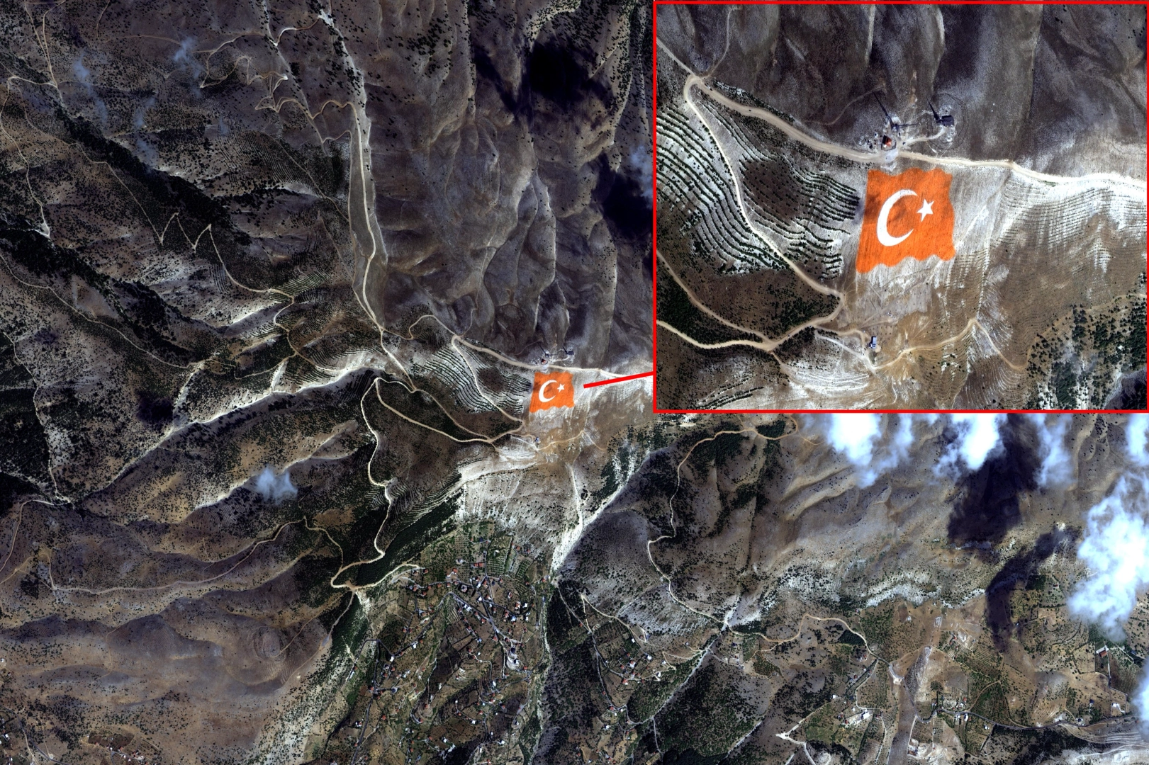 Milli Savunma Bakanlığı’nın resmi sosyal medya hesaplarından yapılan paylaşımda, “Kahramanmaraş Ahır Dağı zirvesine işlenen ay yıldızlı al bayrağımızın eşsiz güzelliğini, Cumhuriyet Bayramı dolayısıyla Göktürk-1 uydumuz ile uzaydan görüntüledik” ifadelerine yer verildi.