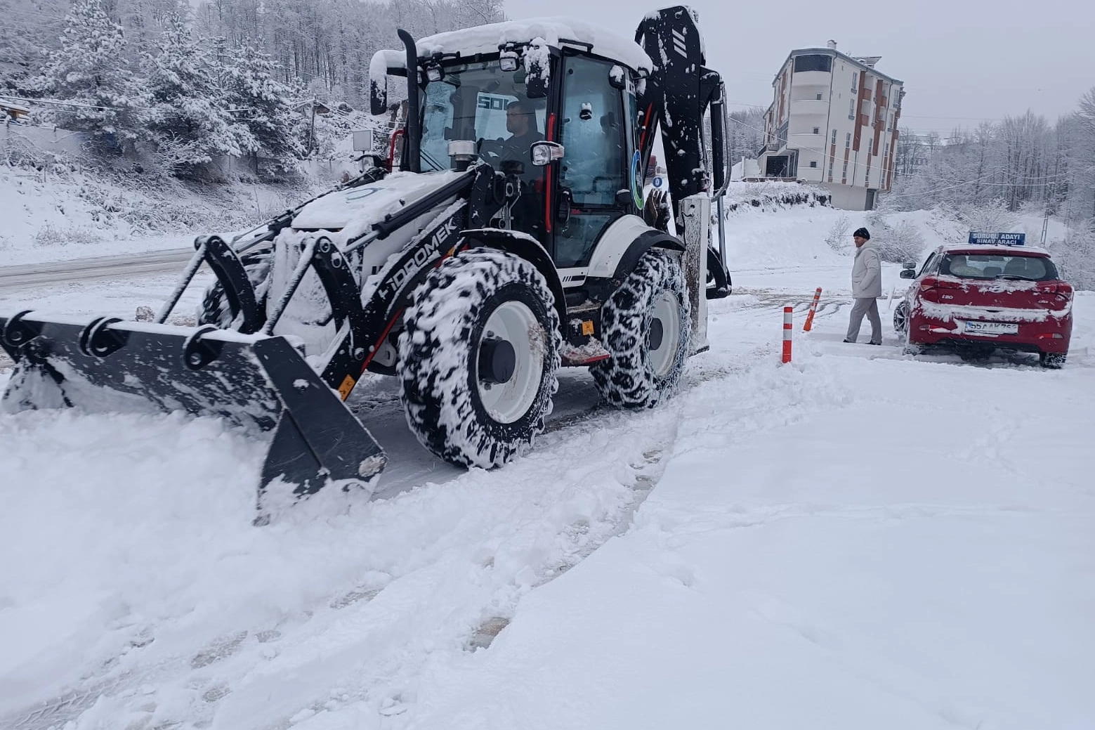 Öte yandan yolda kalan araçlara da müdahale eden ekipler, zaman zaman iş makineleri yardımı ile araçları çekerek sürücülerin mağduriyetlerini giderdi.