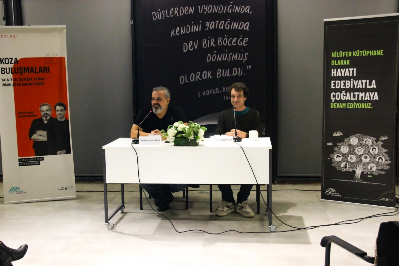 Nilüfer Belediyesi’nin düzenlediği Koza Buluşmaları’nın son konuğu, çağdaş Türk edebiyatının önemli isimlerinden Dr. Özgür Mumcu oldu. Koza Kütüphane’de gerçekleşen ve Hakan Akdoğan’ın moderatörlüğünü yaptığı “Yalnızlık, İletişim, Temas: İnsanlık Ne Kadar Hazır?” başlıklı söyleşi, sanatseverlerin yoğun ilgisiyle karşılandı. Etkinliği Nilüfer Belediye Başkanı Şadi Özdemir’in eşi Nuray Özdemir de takip etti.