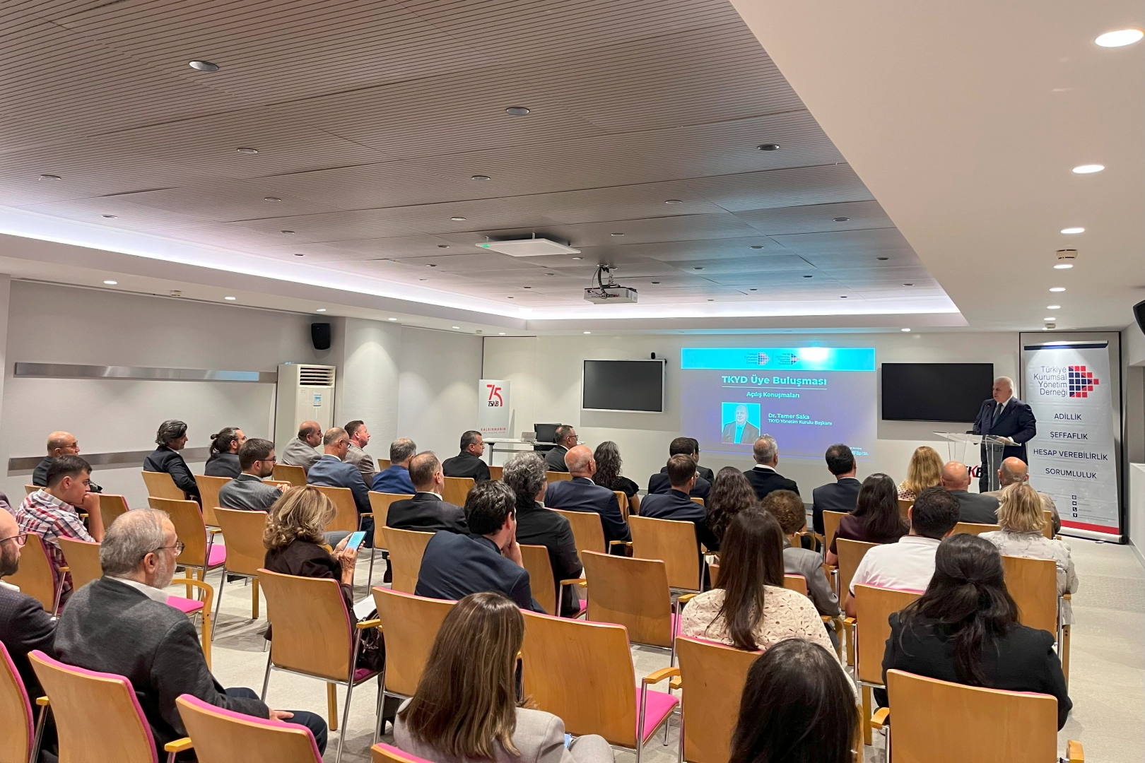 TKYD "Öz Değerlendirme Araçları" lansmanı üyelerin büyük ilgisiyle karşılanırken, TKYD Yönetim Kurulu Başkanı Dr. Tamer Saka, açılış konuşmasında şunları vurguladı: "Kurumsal yönetim, sadece iyi yönetim için değil, sürdürülebilir büyüme ve uzun vadeli değer yaratma için vazgeçilmez bir unsur haline geldi. Bugün tanıtımını yaptığımız Öz Değerlendirme Araçları, kuruluşlarımızın güçlü ve gelişime açık yönlerini görmelerine ve kendi yol haritalarını oluşturmalarına imkân sağlayacak. Çünkü biliyoruz ki kurumların sürdürülebilir başarıyı yakalayabilmesi için, kendilerini sürekli sorgulamaları, yenilemeleri ve geliştirmeleri gerekiyor."