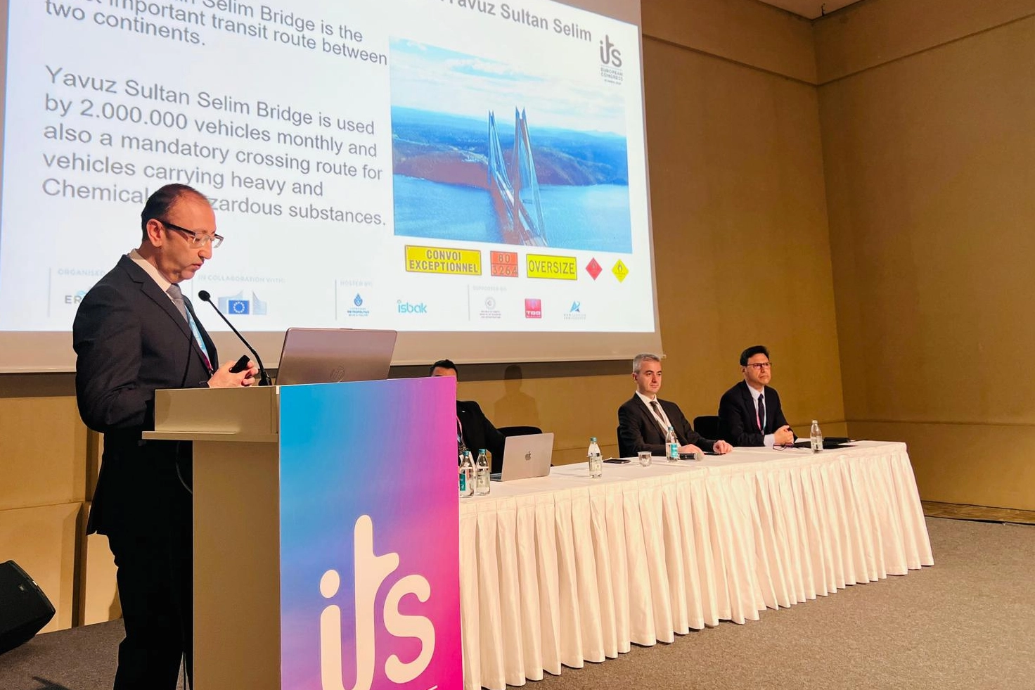 Kongrede gerçekleştirilen panelde konuşan ICA Yavuz Sultan Selim Köprüsü Network ve Akıllı Ulaşım Sistemleri Kıdemli Müdürü Meriç Ergül, projede kullanılan ileri teknolojilere ilişkin şu değerlendirmelerde bulundu: “Elverişli konumu ve ileri teknolojik altyapısıyla Yavuz Sultan Selim Köprüsü ve Kuzey Çevre Otoyolu, İstanbul’un Avrupa ve Asya yakaları arasında kesintisiz, güvenli ve konforlu bir ulaşım imkânı sunarken, şehir içi trafiğini azaltarak çevresel sürdürülebilirliğe de katkı sağlıyor. Toplam 400 kilometrelik otoyol ağı; köprü, tüneller, kavşaklar, viyadükler ve üst/alt geçitlerle entegre bir ulaşım ekosistemi oluşturuyor. Dünyanın en geniş asma köprülerinden biri olan ve üzerinden demiryolu hattı da geçen Yavuz Sultan Selim Köprüsü, her ay yaklaşık 2 milyon araca hizmet veriyor ve özellikle ağır tonajlı ile tehlikeli madde taşıyan araçlar için kritik bir geçiş noktası olarak öne çıkıyor. Bu kapsamda, köprü ve otoyol operasyonlarımızda en güncel Akıllı Ulaşım Sistemleri’ni (ITS) kullanarak trafik akışını 7/24 izliyor, sürücüleri anlık olarak bilgilendiriyor ve olası riskleri önceden tespit edebiliyoruz.