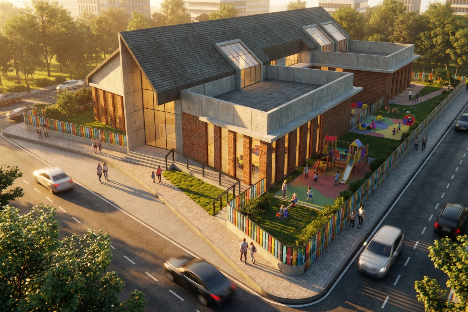 Modern mimari anlayışla tasarlanan yapı; beton, tuğla ve camın dengeli kullanımıyla estetik bir görünüm sunarken, cepheden çatıya uzanan geniş pencereleri sayesinde gün ışığından maksimum düzeyde faydalanacak. Çevreci yaklaşımıyla da öne çıkan proje, sürdürülebilir ve sağlıklı bir ortamda çocukların gelişimine katkı sağlayacak.