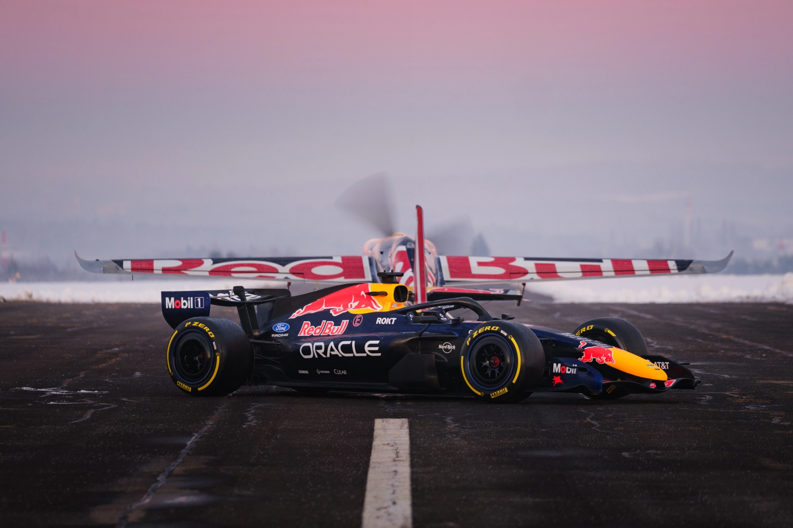 Tanıtım gecesinde eski Red Bull Air Race Dünya Şampiyonu Çek pilot Martin Sonka bir hava gösterisi gerçekleştirdi. Šonka, yaklaşık 200 km/s hızla yaptığı alçak uçuş ve “Cobra” manevrasıyla Oracle Red Bull Racing’in 2026 sezonu için hazırlanan yeni araç tasarımının örtüsünü havada kaldırdı.