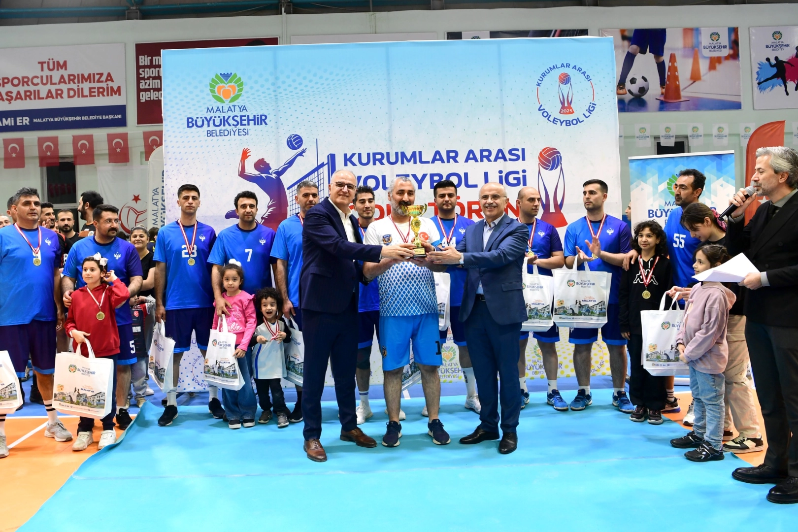 Malatya Büyükşehir Belediyesi tarafından düzenlenen ve 22 kurumdan toplam 440 sporcunun katılım gösterdiği voleybol turnuvası İl Milli Eğitim Müdürlüğü ve il Emniyet Müdürlüğü tarafından oynanan final müsabakası ile sona erdi.