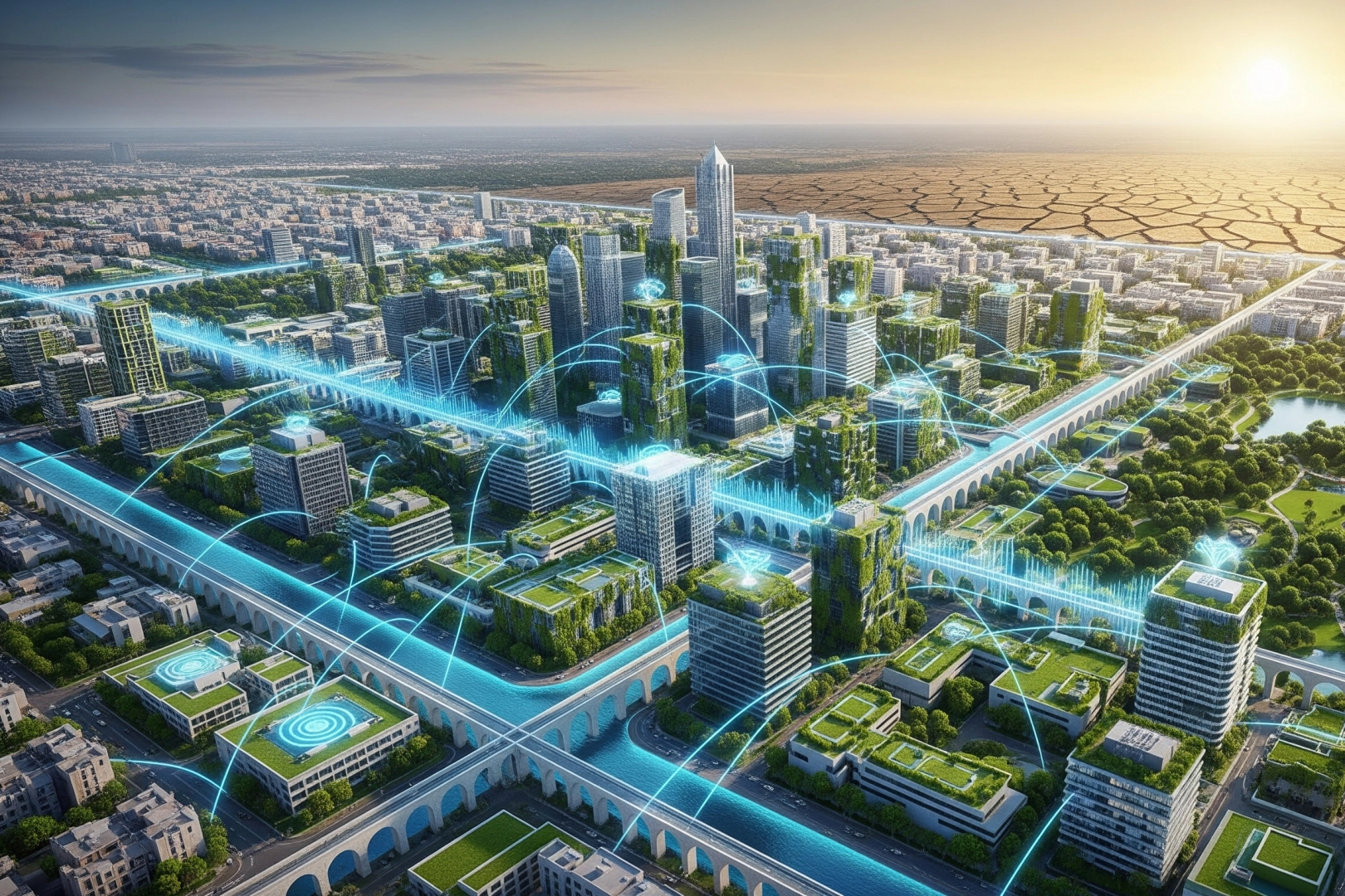 Şehrin su şebekesine akıllı sensörler entegre edilerek borulardaki en küçük sızıntı dahi anında tespit edilir.