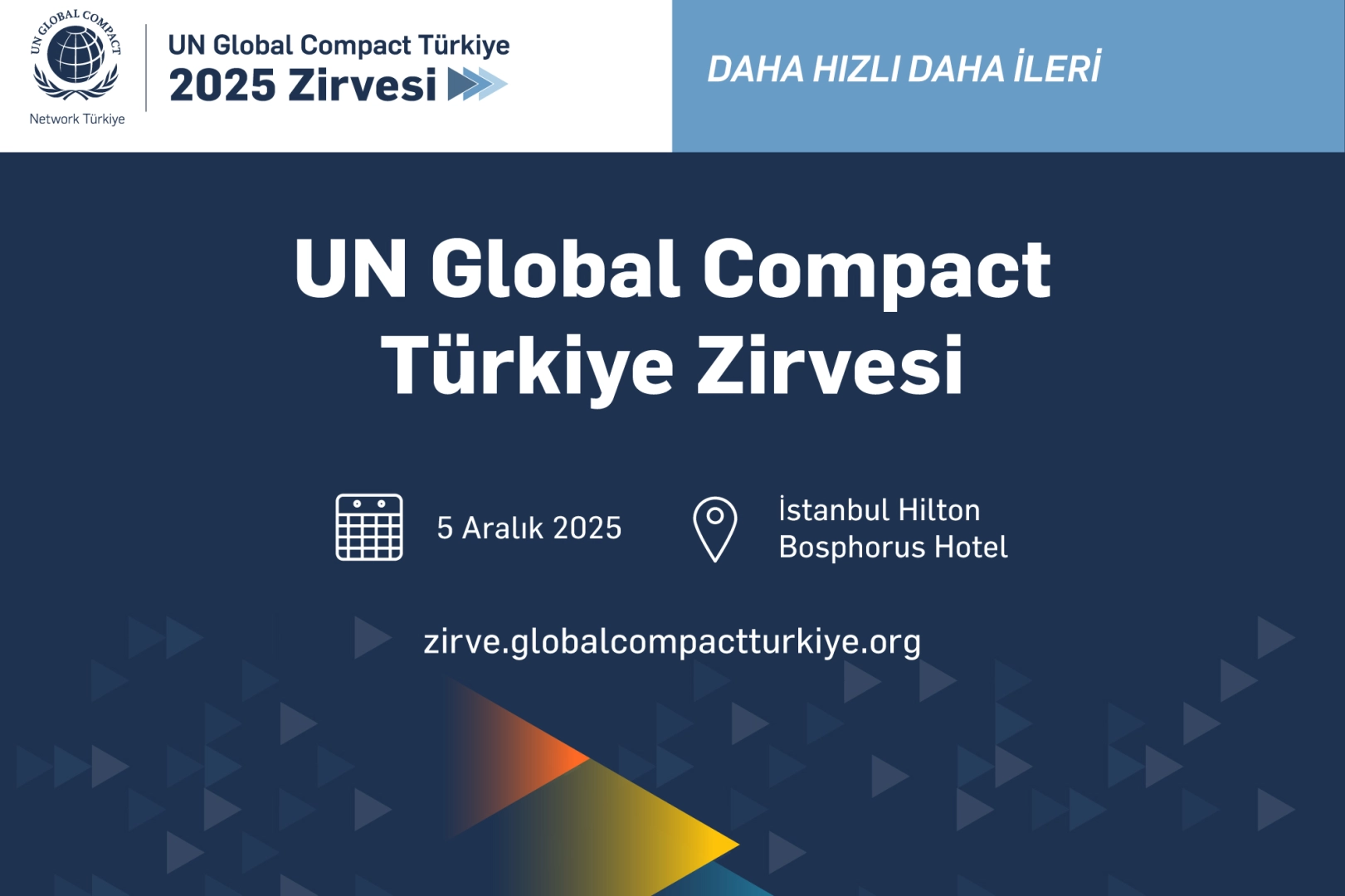 UN Global Compact Türkiye 2025 Zirvesi; Türkiye’den ve Avrupa’dan iş dünyası liderleri, Birleşmiş Milletler, kamu ve sivil toplum temsilcilerini daha adil, kapsayıcı ve yaşanabilir bir dünya için eylemleri hızlandırmak üzere 5 Aralık 2025 tarihinde Hilton Bosphorus İstanbul Hotel’de bir araya getirecek.