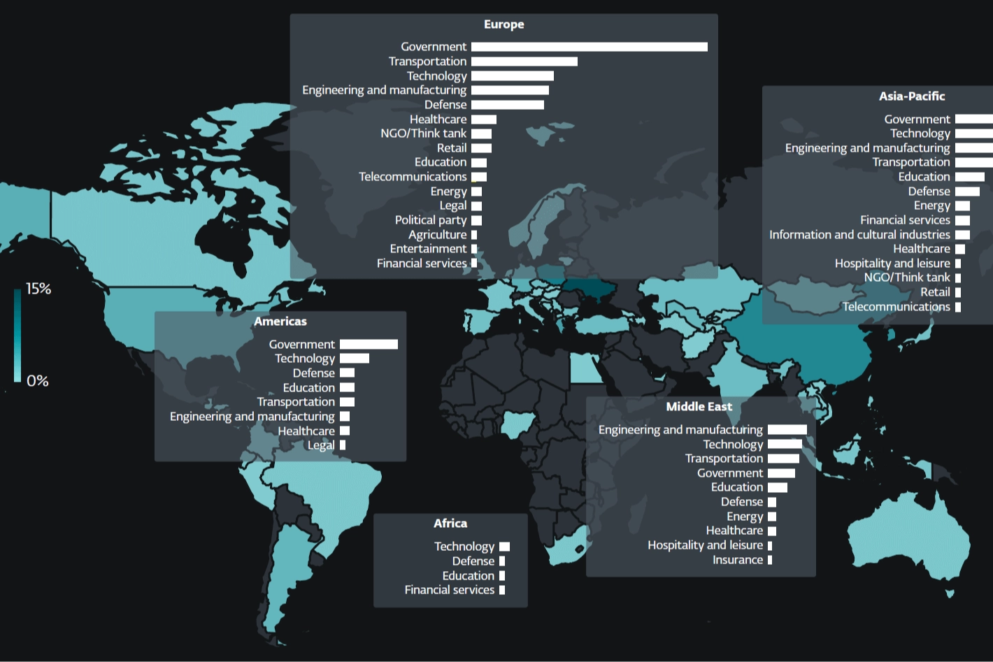 Asya'da APT grupları, önceki raporlama döneminde olduğu gibi hükümet kurumlarının yanı sıra teknoloji, mühendislik ve imalat sektörlerini hedef almaya devam etti. Kuzey Kore ile bağlantılı tehdit aktörleri, Güney Kore ve teknoloji sektörüne, özellikle de rejimin önemli bir gelir kaynağı olan kripto para birimine yönelik operasyonlarda oldukça aktif olmaya devam etti.
