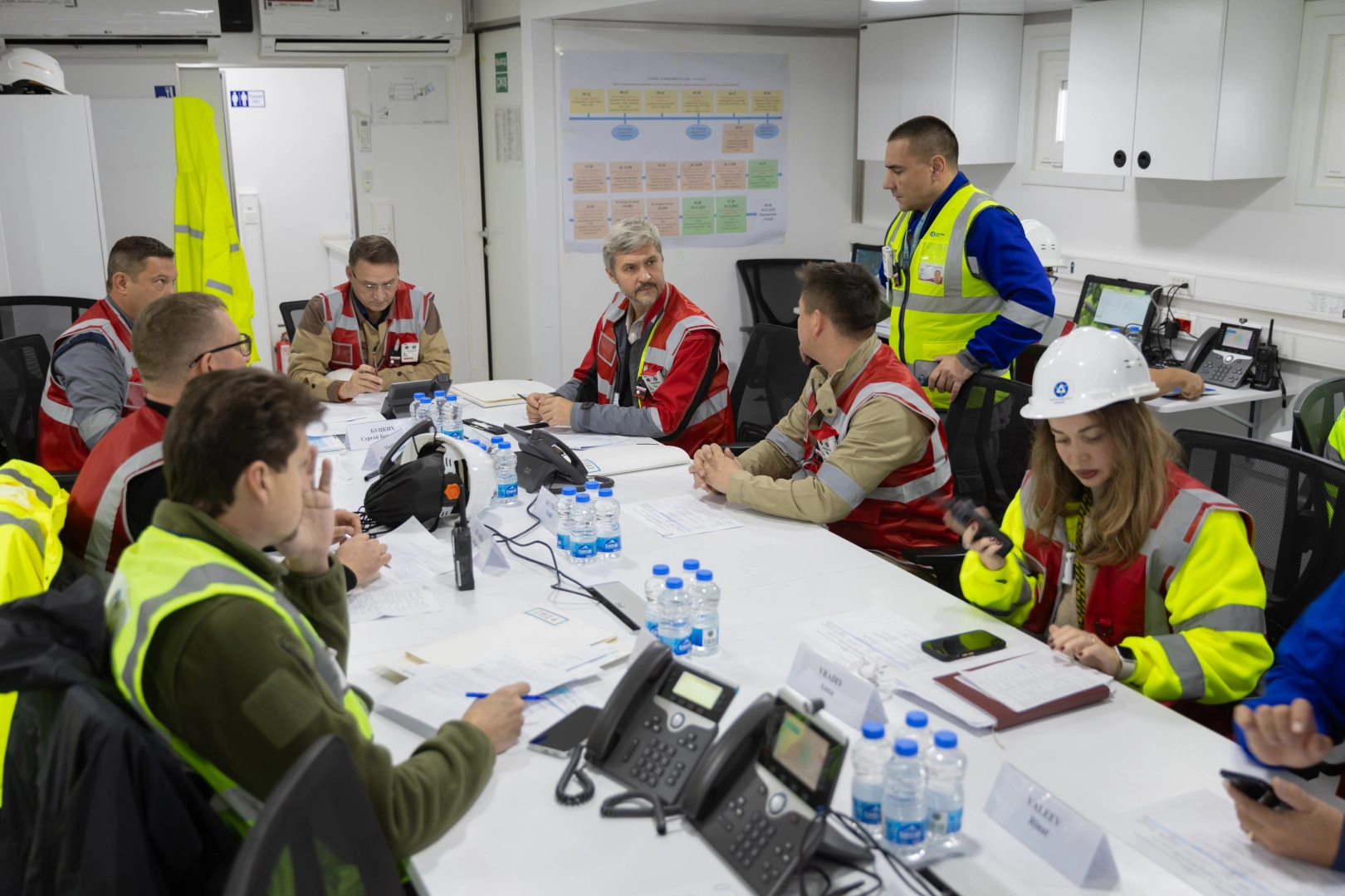 Sahada, AKKUYU NÜKLEER'in acil durumları önleme ve ortadan kaldırma ile yangın güvenliğini sağlama komisyonunun, kaza yönetim ekibinin, mühendislik ve teknik destek ekibinin, uyarı sistemlerinin, acil müdahale gruplarının hazırlığı ve mobil kriz merkezinin işleyişi kontrol edildi.