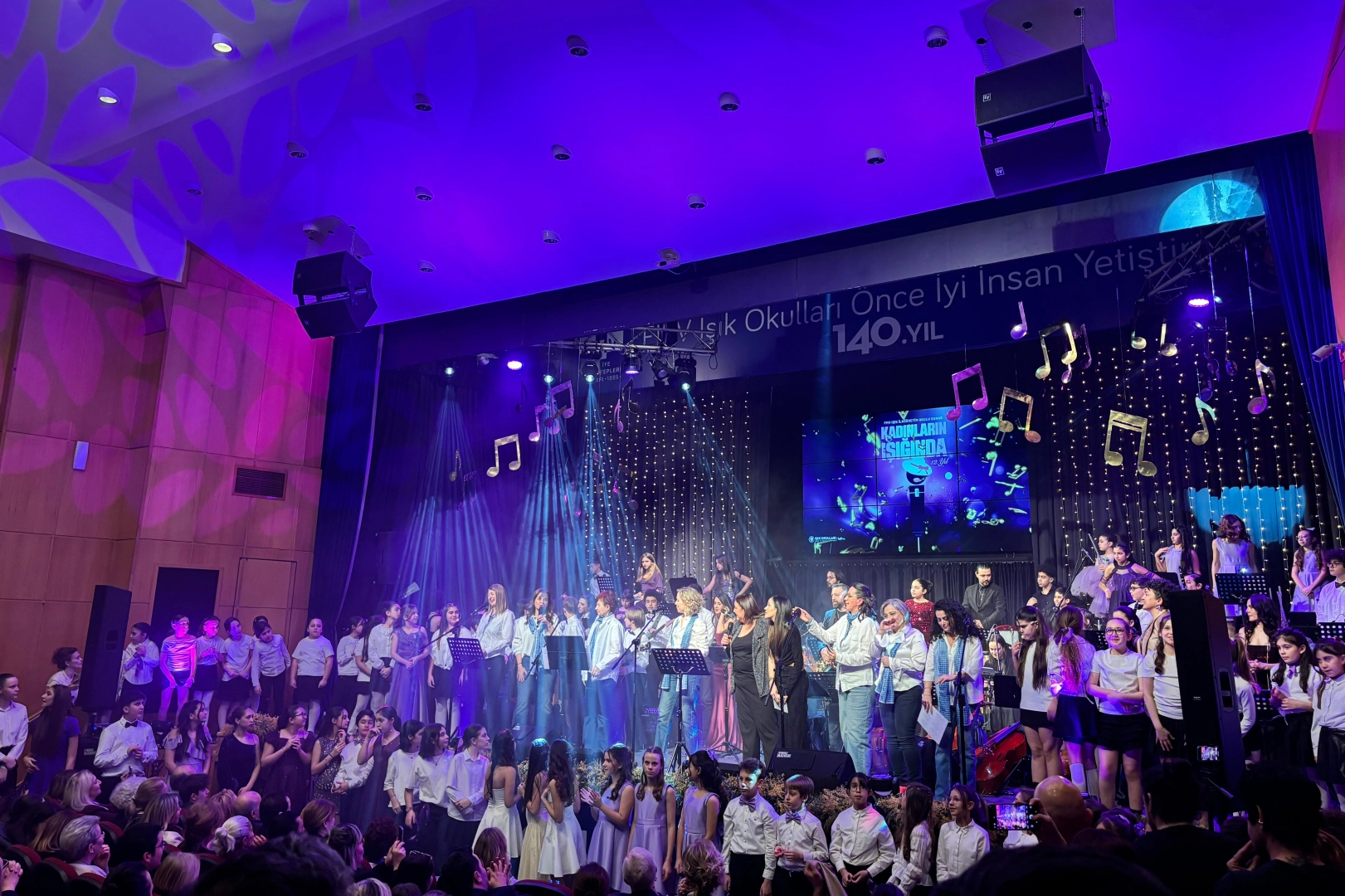 6 Mart Cuma akşamı FMV Işık Okulları Nişantaşı Yerleşkesi’nde gerçekleştirilen özel gecede, “Kadınların Işığında” konseri ile birlikte “Kadınların Işığında Karma Sergi” de misafirlerle buluştu. Gecenin dikkat çeken anlarından biri ise Feyziye Mektepleri Vakfı’nın üst yönetimindeki kadınları, öğrenciler ve öğretmenlerle birlikte sahne alması oldu. Aynı sahneyi paylaşan farklı kuşaklar, sanatın birleştirici gücünü vurgulayan anlamlı bir tablo ortaya koydu.