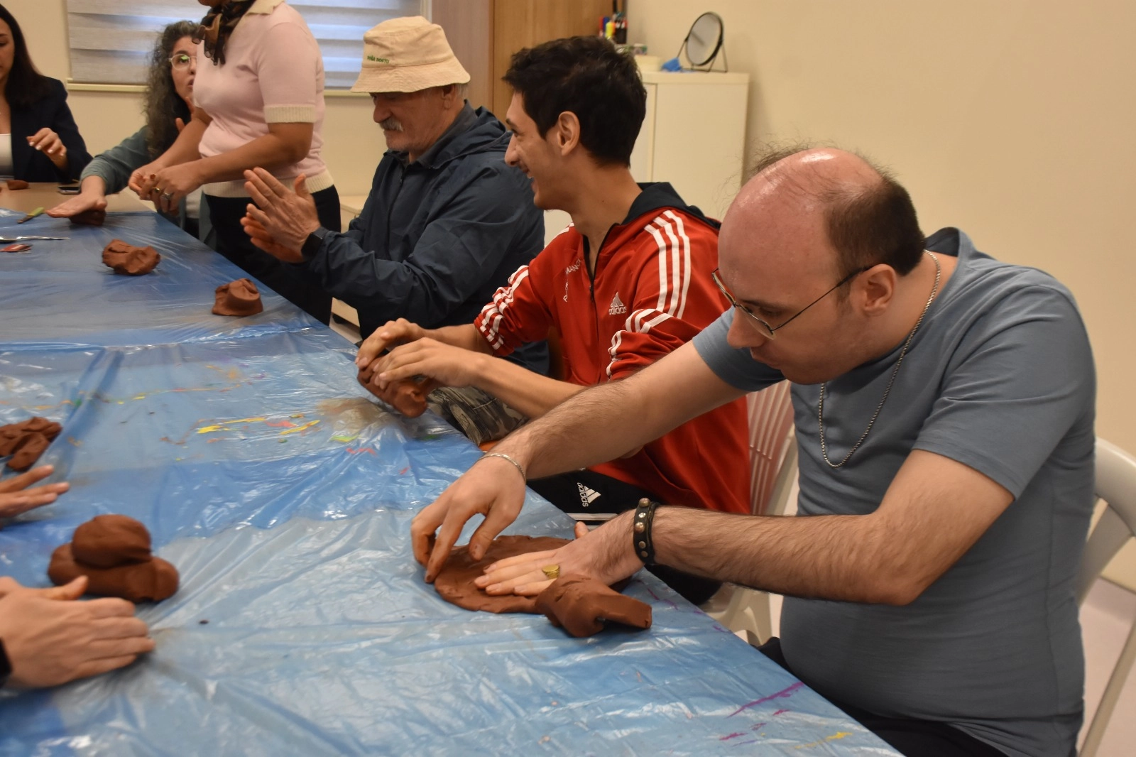 Otizmli oğlu Emre Emiral (34) ile birlikte atölyeye katılan baba Mehmet Emiral, bu atölyelerin özel gereksinimli bireylere önemli katkılar sağladığını dile getirdi. Oğlunun çamura şekil verdiğini ve bu sayede iletişimini artırdığını anlatan Emiral, "Oğlumun daha önce de böyle çalışmaları oldu. Çocukların yeteneklerini ortaya çıkartıp hangi alanda ilerleyebileceklerini belirlemek önemli. Pedagojik olarak ilerleyerek oğlumun liseyi bitirmesini sağladım. Bu sanatsal çalışmalar oğlum gibi engelli bireyleri sakinleştiriyor. Daha rahat oluyorlar, sosyalleşebiliyorlar. Çocukların öz güveni artıyor. Öğretmenlerinin dışında farklı insanlarla diyalog kurmayı öğreniyorlar. Emre üniversite sınavına girdi. Bu yıl kazanamadı. Seneye güzel sanatları hedefliyor. Fotoğraf konusunda yeteneği var. Seramikte başarıları var. Hocaları çizimini beğeniyorlar" ifadelerini kullandı.