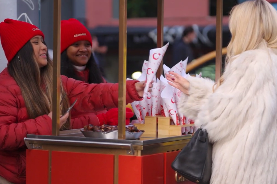 Türkiye’de kış aylarında bir araya gelmenin ve sohbetin simgesi olan kestane, bu kez SoHo sokaklarında günlük hayatın bir parçası haline geliyor. Türk kültürüne ait bu gündelik gelenek, New York’ta farklı bir bağlamda karşılık bulurken, yalnızca bir yiyecek olarak değil; paylaşmanın, mevsimle kurulan ilişkinin ve sokakta yan yana gelmenin ifadesi olarak sunuluyor.