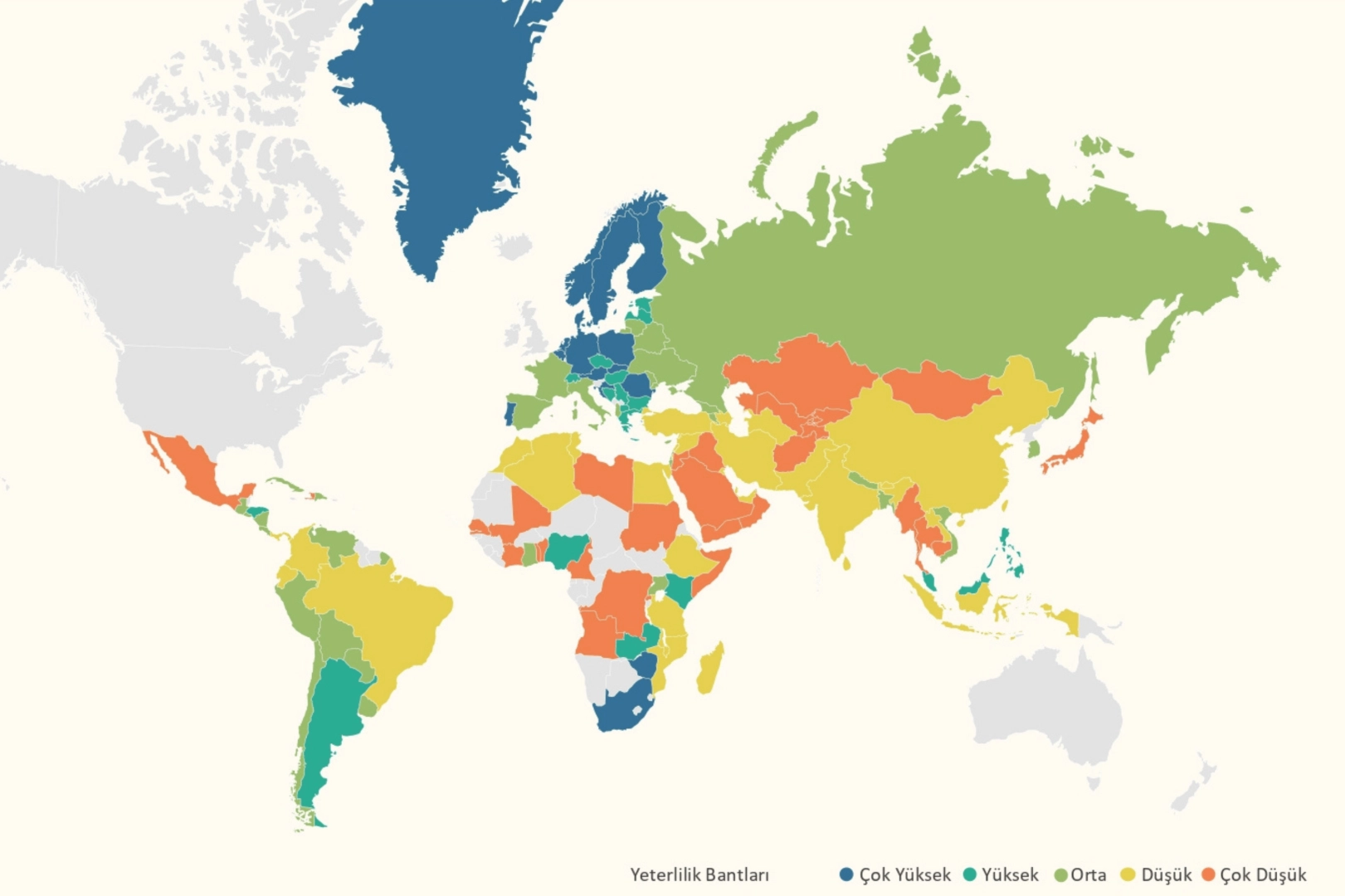 Türkiye 71’inci sırada, en iyi şehir İzmir Türkiye, 488 puanla geçen yıla göre 9 puan kaybederek 65’inci sıradan 71’inci sıraya geriledi. Ülke genelinde İngilizce yeterliliği “düşük” seviyede kalırken, Avrupa sıralamasında da sondan ikinci sırada yer aldı. İngilizce yeterlilikte en iyi bölge ise Marmara oldu. Oysa geçen yılki araştırmada Ege Bölgesi ön plana çıkmıştı. İzmir 515 puanla Türkiye’deki şehirler arasında ilk sıraya yerleşti ve Antalya’yı tahttan indirdi. Ankara ise başkentler sıralamasında 508 puanla Türkiye ortalamasının üstünde yer aldı. 501 puanla 26-30 yaş grubu öne çıkarken ülke genelinde en güçlü beceri okuma, en zayıf beceri ise konuşma oldu. Araştırmaya göre Türkiye’de özellikle 40 yaş üstü yetişkinlerde üretici (konuşma ve yazma) becerilerinde belirgin düşüş yaşandı. Genç yetişkinlerde ise pandemi öncesine kıyasla hâlâ toparlanma görülmüyor.